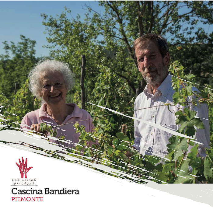 Lina Rigo e Andrea Ferratini sono agricoltori, anche se di origini cittadine. Custodi del territorio. Un territorio montano, povero di cui ne accettano la produttività nel rispetto della tipicità del terreno senza arrivare allo sfruttamento dello stesso. Cascina Bandiera l’hanno trovata quasi trent’anni fa. L’hanno curata, riqualificata e orientata ad una agricoltura non intensiva, compatibile con il luogo: isolato, di difficile accesso, ma ricco di attrattiva e con un particolare magnetismo. Il loro caratteristico interesse per la ricerca e la sperimentazione ha favorito e permesso di diversificare le coltivazioni con semine appropriate in consociazione, protette da alte siepi arboree di essenze locali, nelle quali nidificano e vivono diverse varietà di predatori. La biodiversità permette di avere un habitat vario, contribuisce alla fertilità del terreno e alla difesa naturale, creando barriere protettive alle infestazioni e porta a superare il problema delle coltivazioni pluriennali e perenni. Coltivano uva da vino, ma anche mele di antiche varietà, nocciole, piante officinali, orticole, fragole profumate di Tortona. Vinificano e imbottigliamo solamente le uve di loro produzione. L’inerbimento del vigneto con semine nelle interfile protegge dall’erosione in terreni scoscesi e la concimazione verde aumenta la fertilità del terreno; le poche e superficiali lavorazioni del suolo vanno a preservare la vita microbica del terreno sottostante. Il limitatissimo uso di rame e zolfo, senza l’uso di fitofarmaci di sintesi, e l’impiego di “collaboranti” naturali preservano dai problemi di inquinamento del terreno e delle falde. La raccolta manuale permette una cernita delle uve anche in annate difficoltose. L’utilizzo dei lieviti indigeni è indispensabile per una vinificazione naturale che esprime in modo esplicito e sincero le caratteristiche di un terroir. La corposità e la concentrazione sono due elementi di longevità. Si può fare in vigna grazie ad una potatura che dia, in media, 25-30 q/ha. “Se l’uomo interviene poco, permette al terroir di esprimersi….il vino si prenderà tutto il tempo necessario per maturare sulle sue fecce fini. Verrà travasato solo prima dell’imbottigliamento, naturalmente tenendo conto delle condizioni atmosferiche e della luna, senza chiarifiche né filtrazioni”. Le coltivazioni sono certificate da Codex da quando sono arrivati, affascinati da un luogo nel quale l’opera dell’uomo deve inserirsi e assecondare l’ambiente senza volerlo modificare e stravolgere.