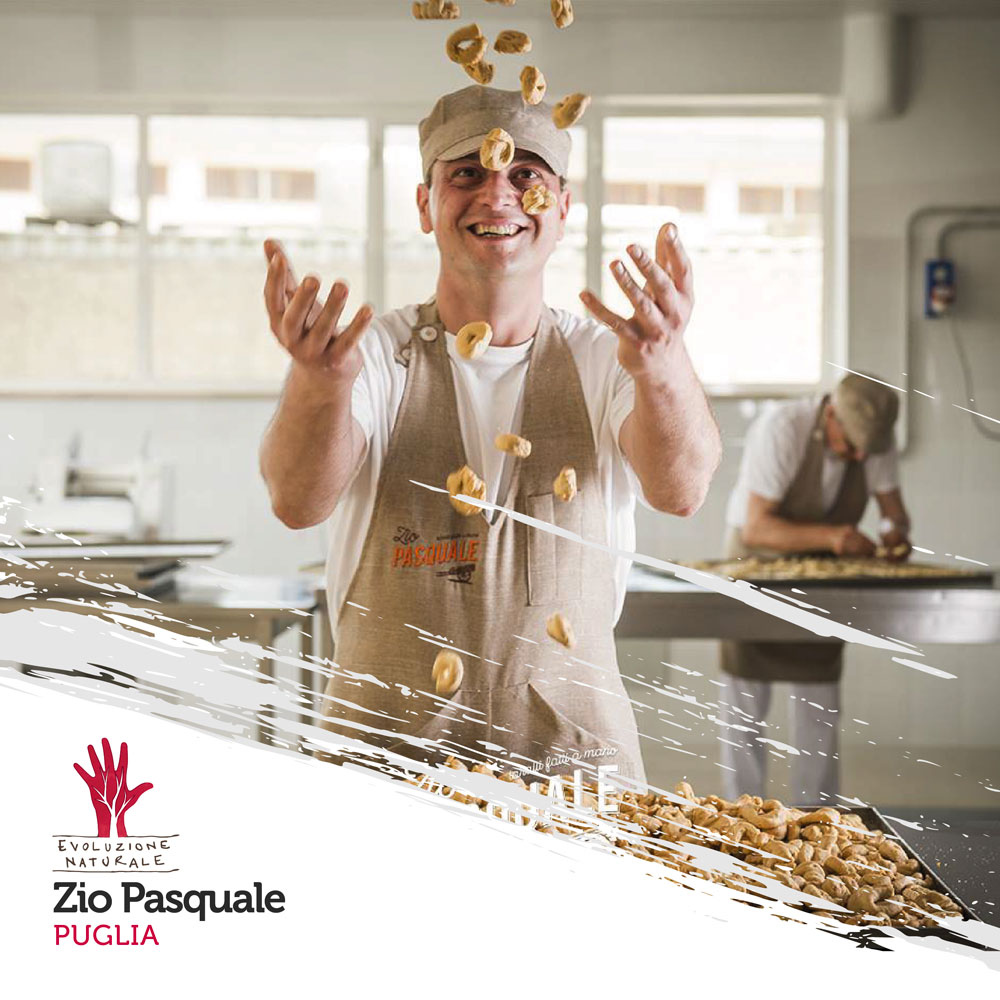 Zio Pasqualeย รจ un’azienda familiare nata con uno scopo ben definito: produrreย taralliย di qualitร . La passione e la determinazione li hanno indotti, con semplicitร , ad ottenere un prodotto artigianale diverso dal solito. Alla base ci sono una grande cura e attenzione verso l’intero processo di produzione, sottoposto ad un mirato controllo a partire dalla scelta delle materie prime fino alla trasformazione. Solo in tal modo sono riusciti a realizzare un meraviglioso progetto, mantenendo vive le tradizioni della loro terra. Una caratteristica essenziale della loro produzione รจ quella di non utilizzare nessun tipo di grassi, nรฉ additivi chimici e conservanti, garantendo in tal modo un prodotto altamente digeribile che conserva intatta la genuinitร e la fragranza degli antichi sapori.